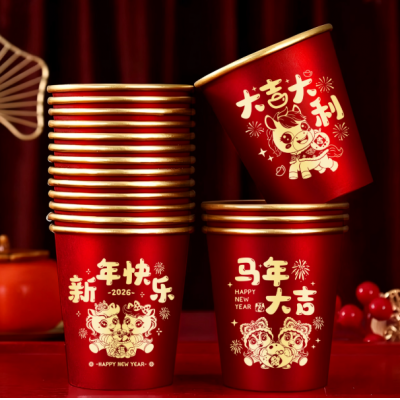 首页 > 百货 > 2026马年新款春节纸杯加厚一次性新年过年福字金箔杯子家用批发