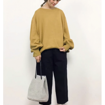 日系外单秋冬宽松款灯笼袖圆领女装针织衫19391