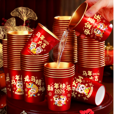 首页 > 百货 > 2026马年新款春节纸杯加厚一次性新年过年福字金箔杯子家用批发